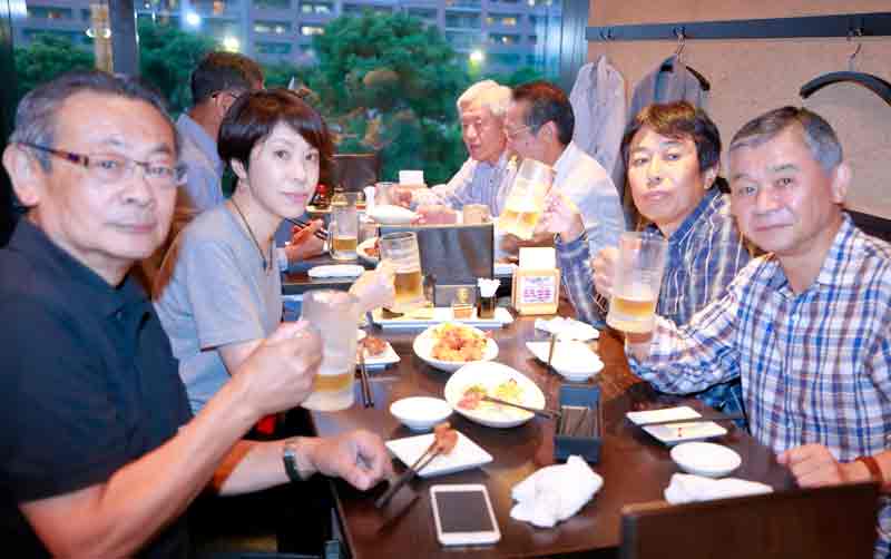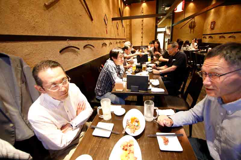 近くの中華料理のお店に場所を移動して、美味しい料理とビールや紹興酒などを楽しみながら、日中の疲れも忘れて大いに語り合いました。