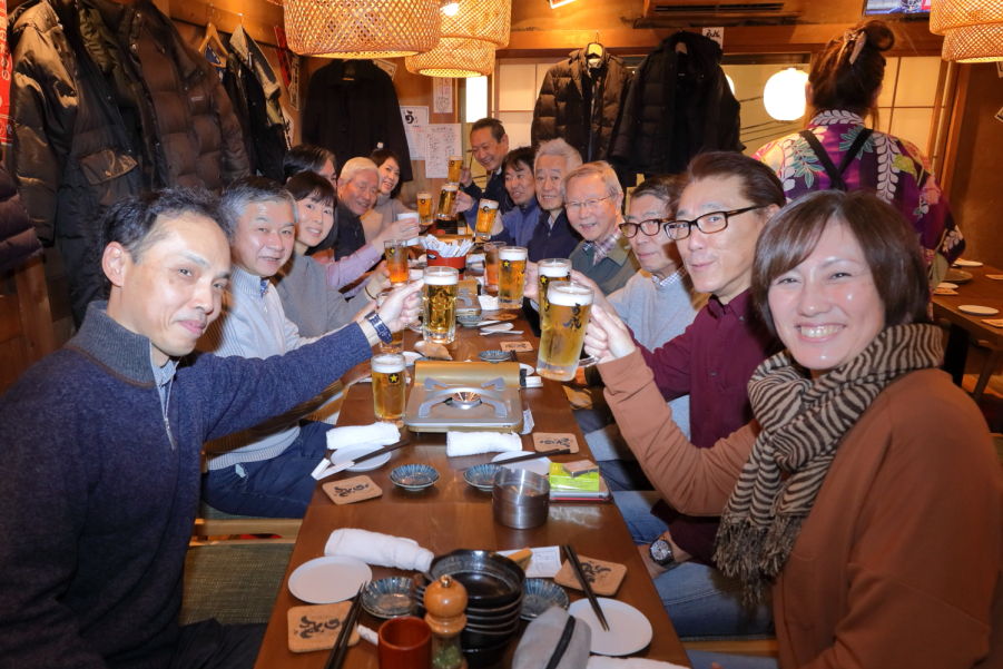 講評会終了後、会場を近所の居酒屋に移動して、新年会を兼ねた懇親会が開催されました。先生を中心として写真談義に熱心なグループ、介護やら、お墓やら写真とは全く関係ない話題で盛り上がるグループ等、和気藹々の楽しい時間を過ごし、CLPメンバーとしての絆をますます深くしました。