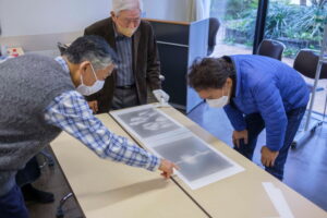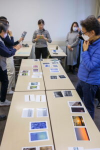 今回の研究会は、前回の写真展作品選定で修正が必要となった写真の確認および写真展会場の写真配置の決定を行いました。写真の色彩などで、見に来ていただいたお客様に違和感を与えないよう、先生に写真を配置して頂きました。あとは会場でもう一度並べてライティングを含めて微調整を行います。28日からの写真展が楽しみです。
